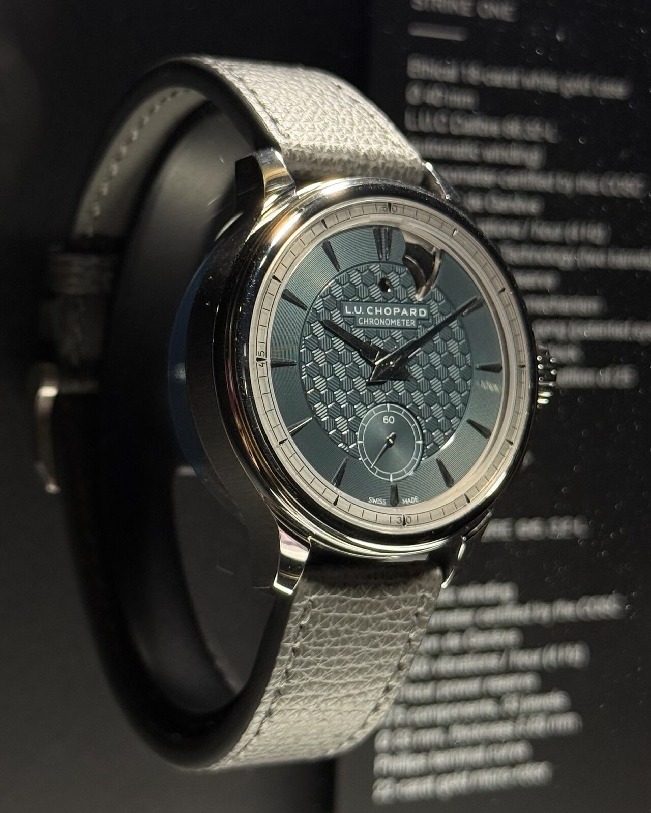As someone who personally loves patterns and considers them a core part of my creative process, it’s no surprise that the Chopard exhibition had a special place in my heart. The maison is known for combining multiple patterns within a single movement in their watches. However, I was particularly in awe of the L.U.C Strike One. Its hand-guilloché honeycomb motif, paired with the internal grain lines of each hexagon, creates a theatrical interplay between light, shadow, and color. It’s a refreshing reminder of how much narrative power engravings hold when executed with intention.